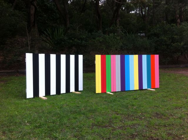 Francesca Mataraga, ‘fence fragment I’, acrylic paint on cypress pine, 1.2m x 6.5m x 40cm.