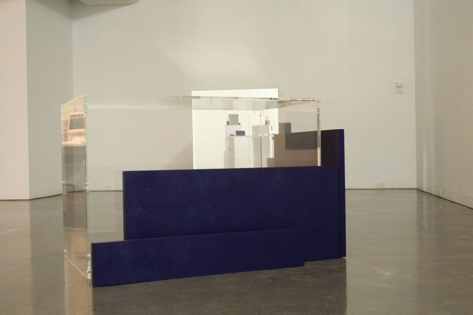 Images 1-3: Installation view and details from The Empty Space Project at Tin Sheds Gallery. Clear perspex and mirror perspex, oil on MDF, mirror, dimensions variable, 2006.